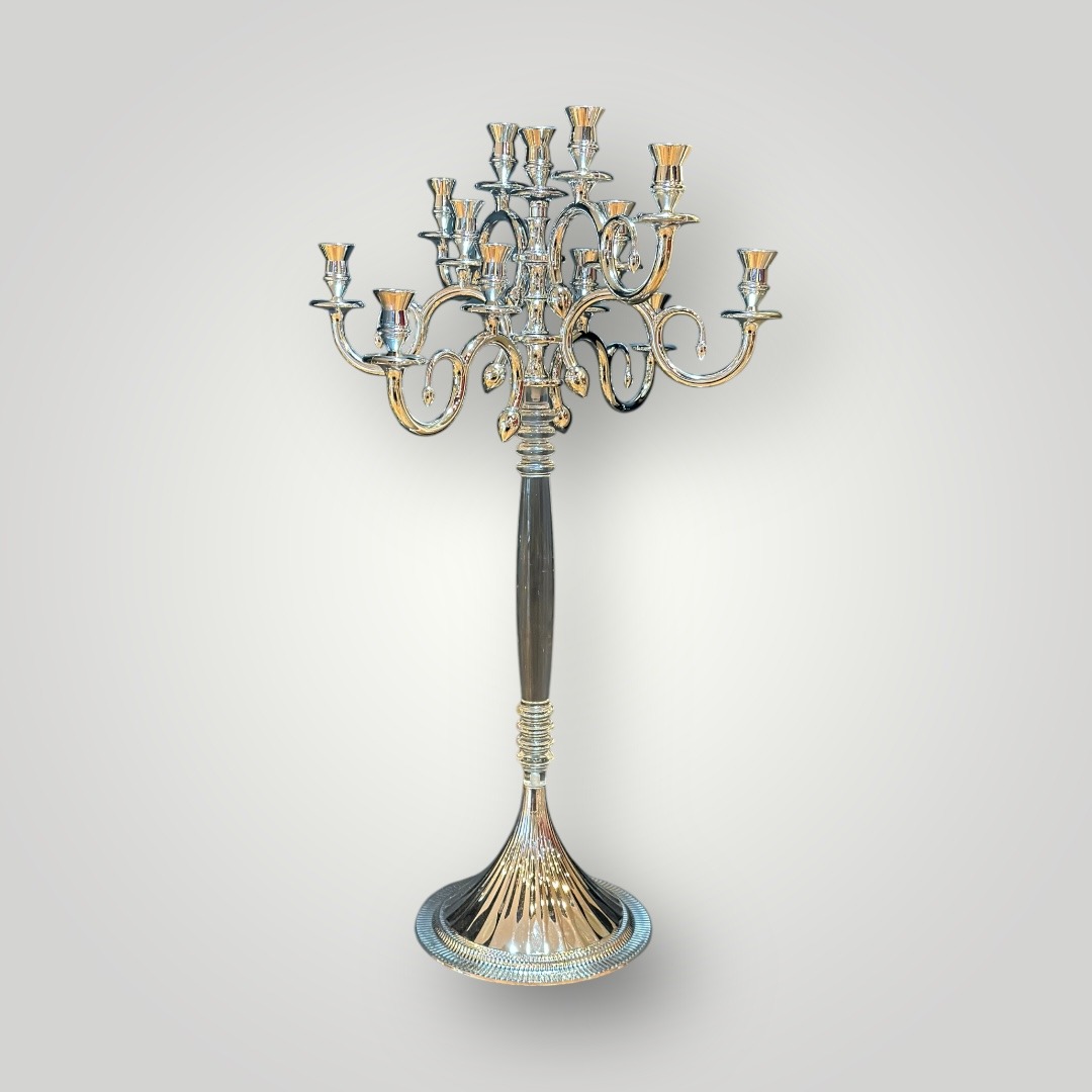 13 Mumlu Gümüş Polikarbon Gövde Çırağan Şamdan